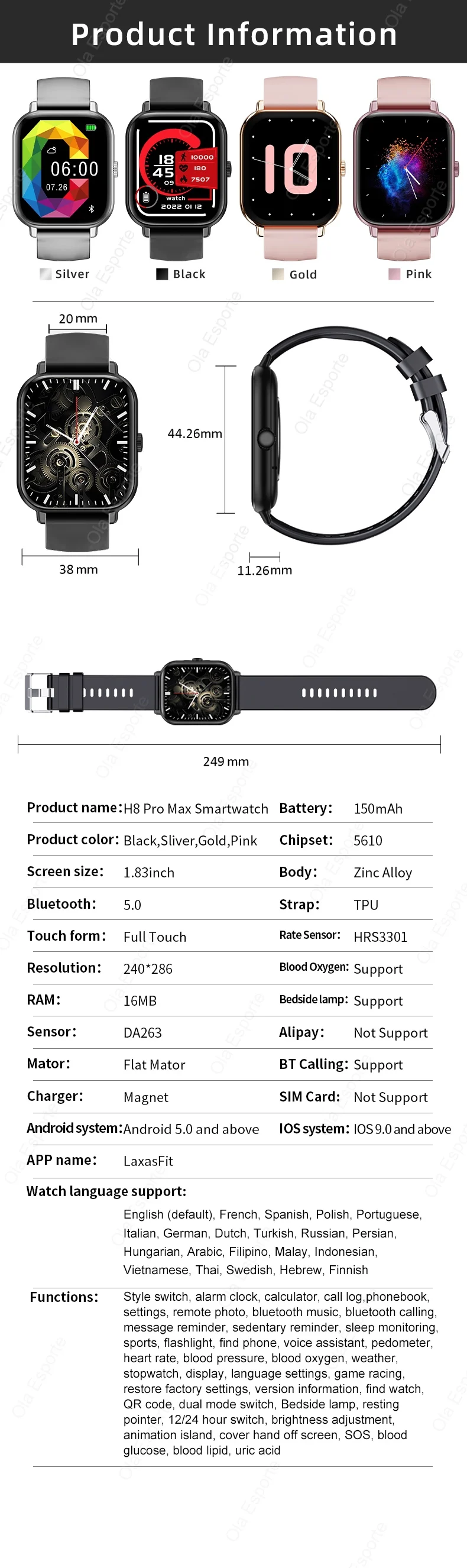Cor: Preto, branco, dourado, rosa